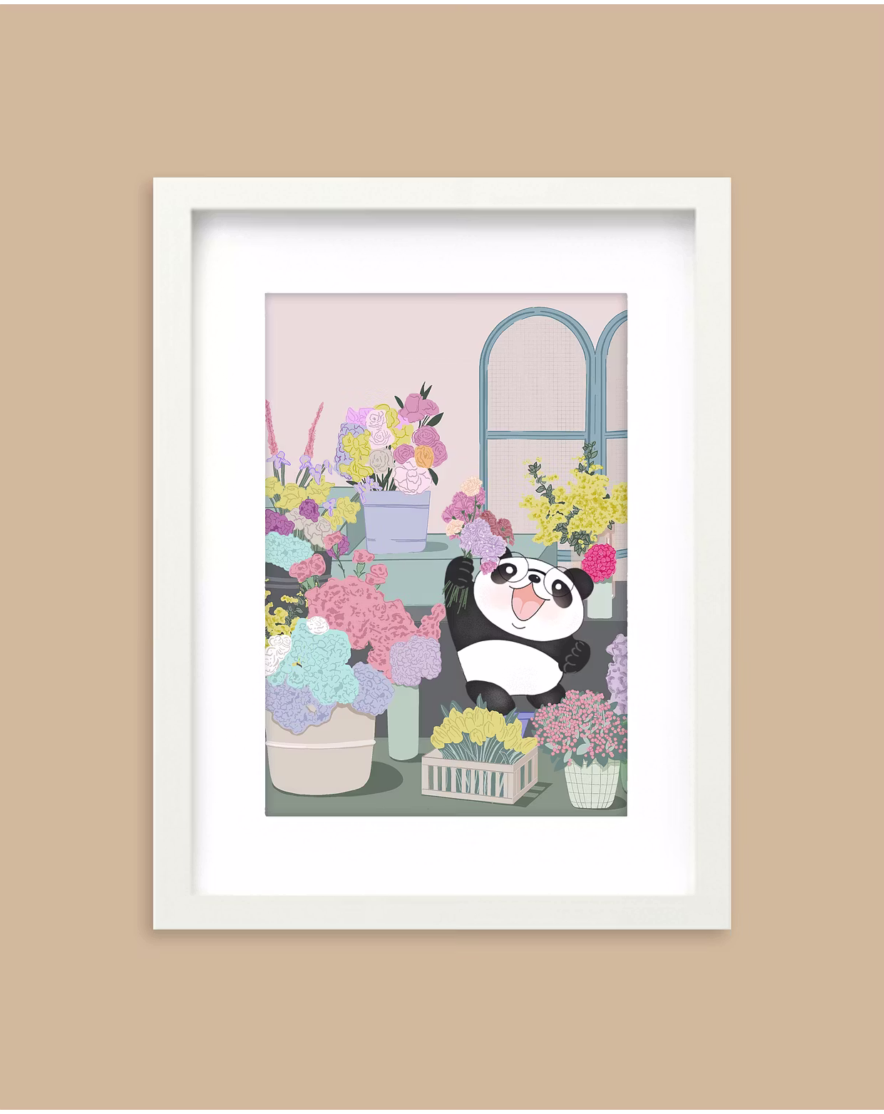 A delightful endearing art print where it was a soft, golden morning when Cubo wandered down the lane and paused, in front of the little florist’s cart tucked beneath a leafy tree. The air smelled of jasmine and wild roses. Drawn in by color and scent, Cubo spent forever choosing just the right bunch, marigolds for joy, daisies for hope, and a single tulip. Hang this piece in your home, and every day will feel like that morning quiet, sweet, full of unexpected wonder.